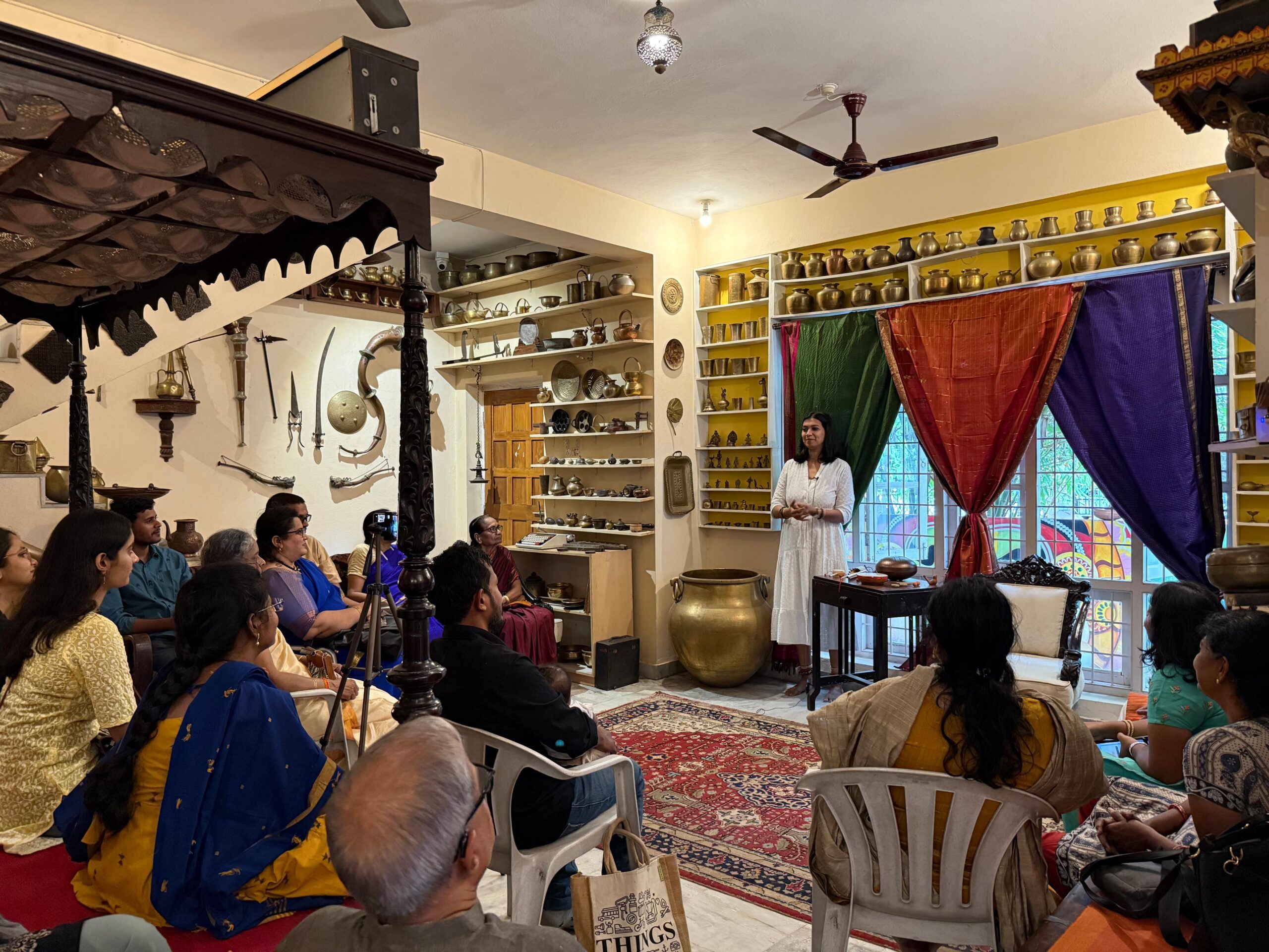 The morning ended on a beautiful note, with our guests expressing deep appreciation for Deepa’s remarkable presence and storytelling. In Deepa’s words, “The home museum was so inviting, so conducive to connection. Sharing stories from our intangible oral heritage in that space created a deep resonance — a sense of togetherness, a seamless coming together of what a space symbolises: its underpinnings, its ethos, and its core values. Stories may be real or not but the connections over stories that we make are certainly real and very precious.”